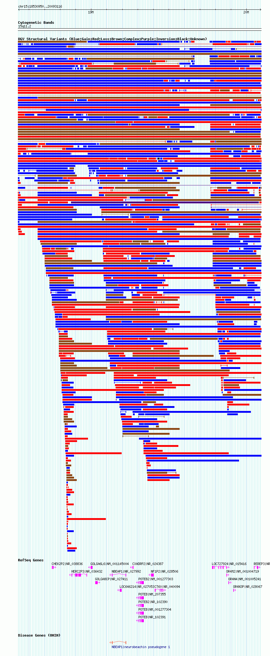 Variant DetailsVariant: essv25790112| Internal ID | 19164389 | | Landmark | | | Location Information | | | Cytoband | 15q11.1 | | Allele length | | Assembly | Allele length | | hg38 | 2238119 | | hg19 | 2320817 | | hg18 | 1562167 |