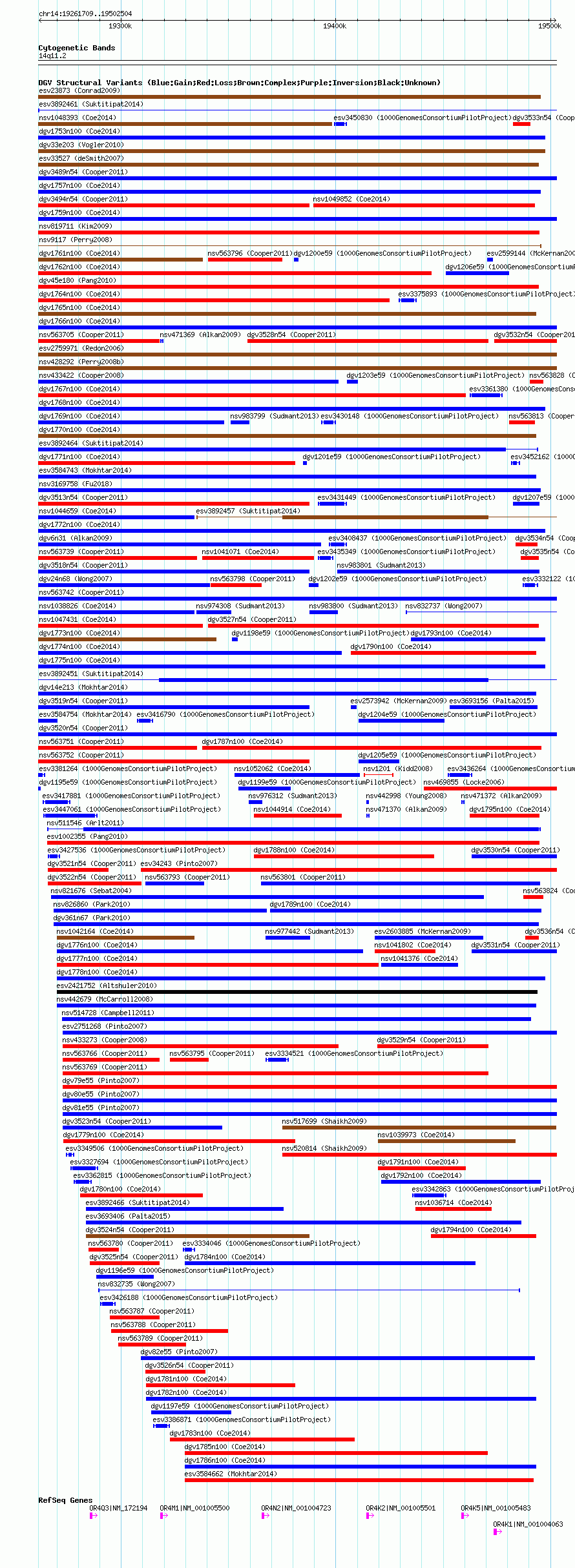 Variant DetailsVariant: essv25790197| Internal ID | 19165278 | | Landmark | | | Location Information | | | Cytoband | 14q11.2 | | Allele length | | Assembly | Allele length | | hg38 | 240796 | | hg19 | 240796 | | hg18 | 240796 |