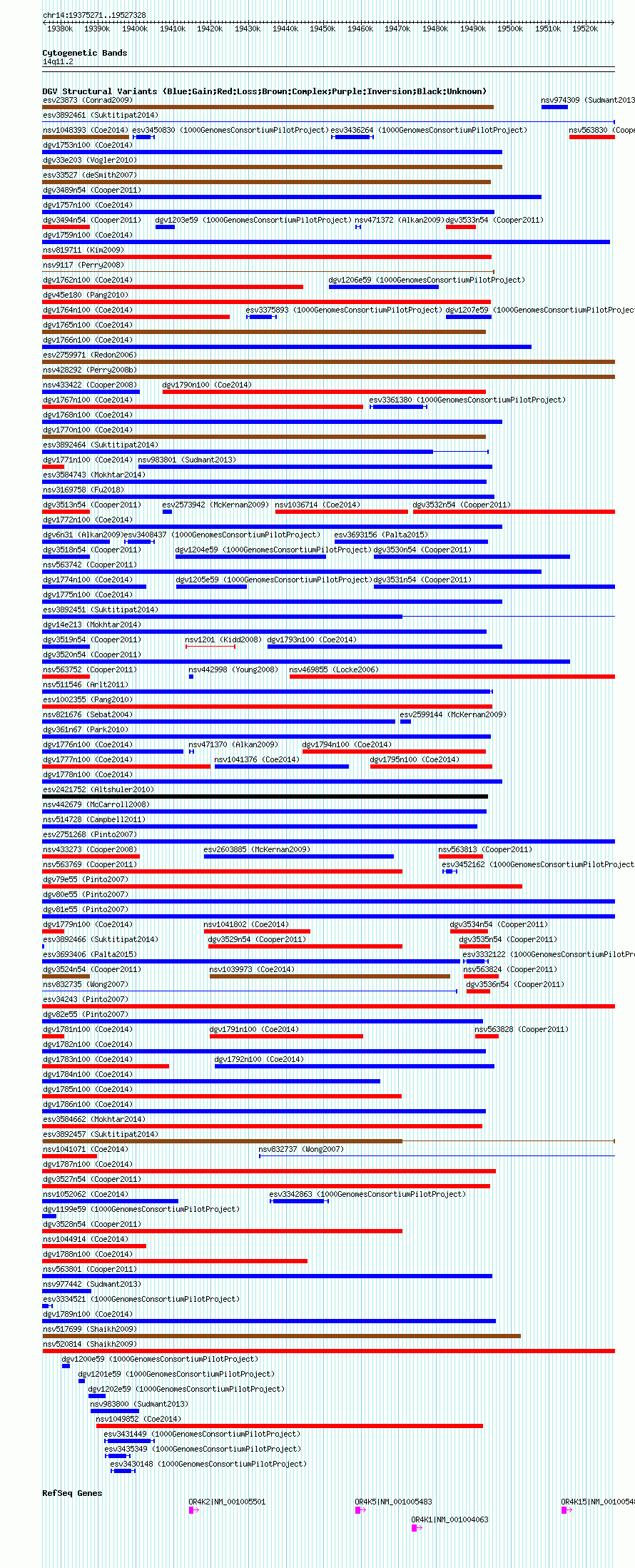 Variant DetailsVariant: essv25790217| Internal ID | 19164014 | | Landmark | | | Location Information | | | Cytoband | 14q11.2 | | Allele length | | Assembly | Allele length | | hg38 | 152058 | | hg19 | 152058 | | hg18 | 152058 |