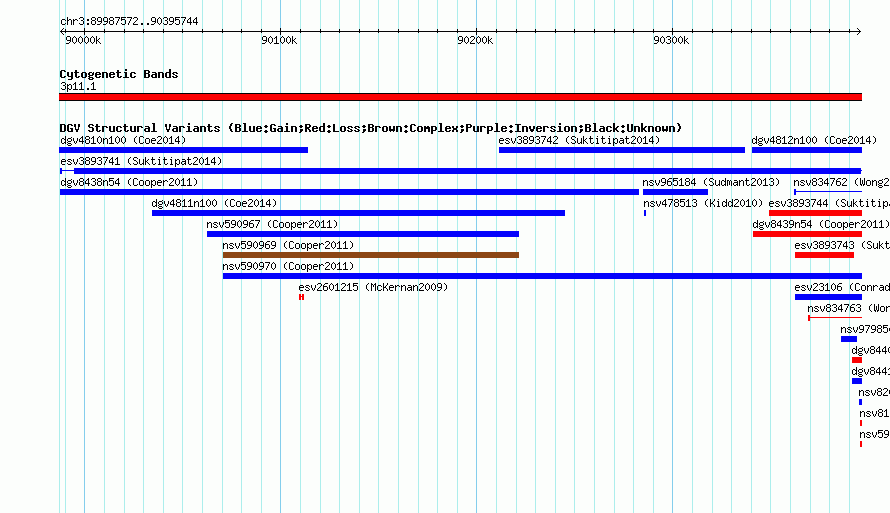 Variant DetailsVariant: essv25790442| Internal ID | 19178565 | | Landmark | | | Location Information | | | Cytoband | 3p11.1 | | Allele length | | Assembly | Allele length | | hg38 | 408173 | | hg19 | 408173 | | hg18 | 408173 |