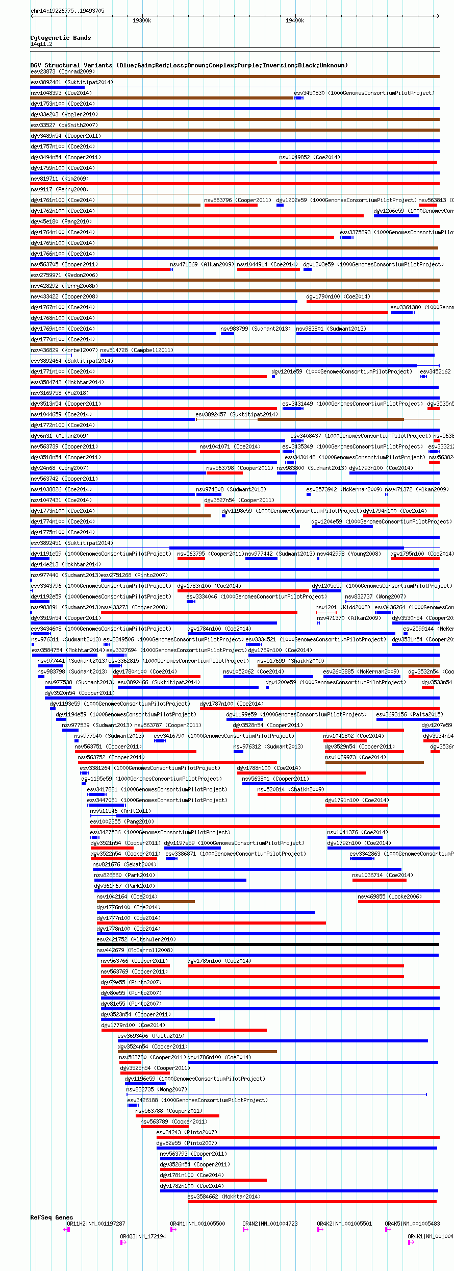 Variant DetailsVariant: essv25790504| Internal ID | 19171338 | | Landmark | | | Location Information | | | Cytoband | 14q11.2 | | Allele length | | Assembly | Allele length | | hg38 | 266931 | | hg19 | 266931 | | hg18 | 266931 |