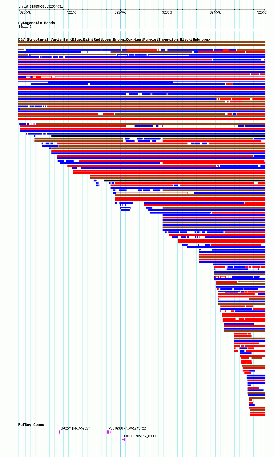 Variant DetailsVariant: essv25790522| Internal ID | 19177584 | | Landmark | | | Location Information | | | Cytoband | 16p11.2 | | Allele length | | Assembly | Allele length | | hg38 | 518994 | | hg19 | 518994 | | hg18 | 518994 |