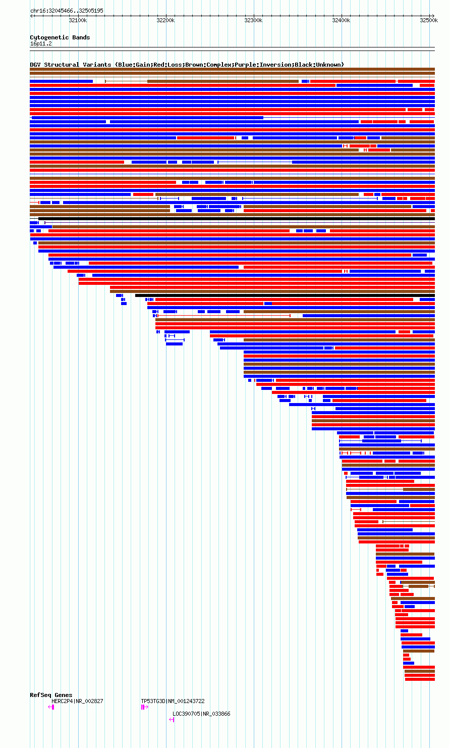 Variant DetailsVariant: essv25791054| Internal ID | 19179112 | | Landmark | | | Location Information | | | Cytoband | 16p11.2 | | Allele length | | Assembly | Allele length | | hg38 | 459730 | | hg19 | 459730 | | hg18 | 459730 |