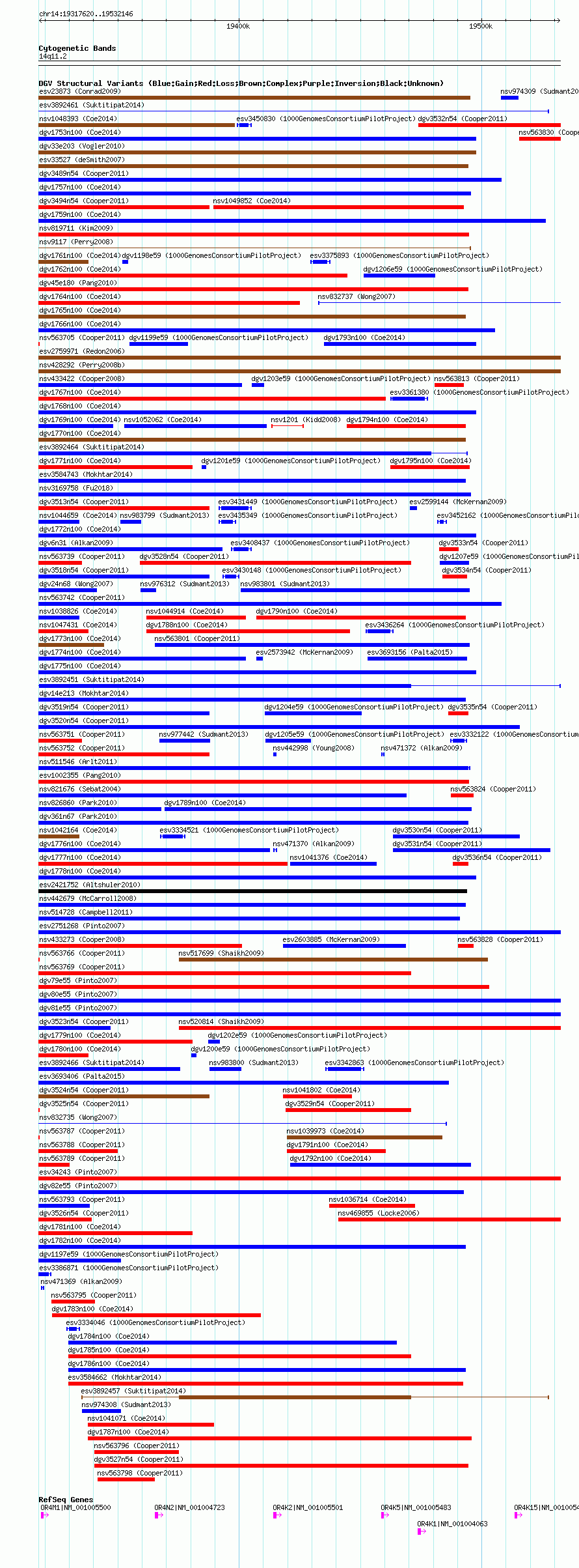 Variant DetailsVariant: essv25791101| Internal ID | 19173678 | | Landmark | | | Location Information | | | Cytoband | 14q11.2 | | Allele length | | Assembly | Allele length | | hg38 | 214527 | | hg19 | 214527 | | hg18 | 214527 |