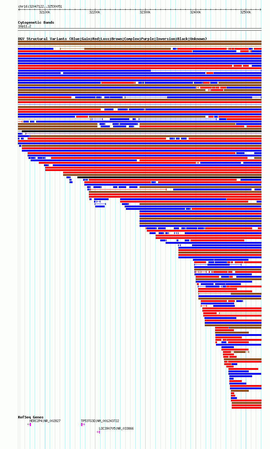 Variant DetailsVariant: essv25791196| Internal ID | 19181777 | | Landmark | | | Location Information | | | Cytoband | 16p11.2 | | Allele length | | Assembly | Allele length | | hg38 | 482930 | | hg19 | 482930 | | hg18 | 482930 |