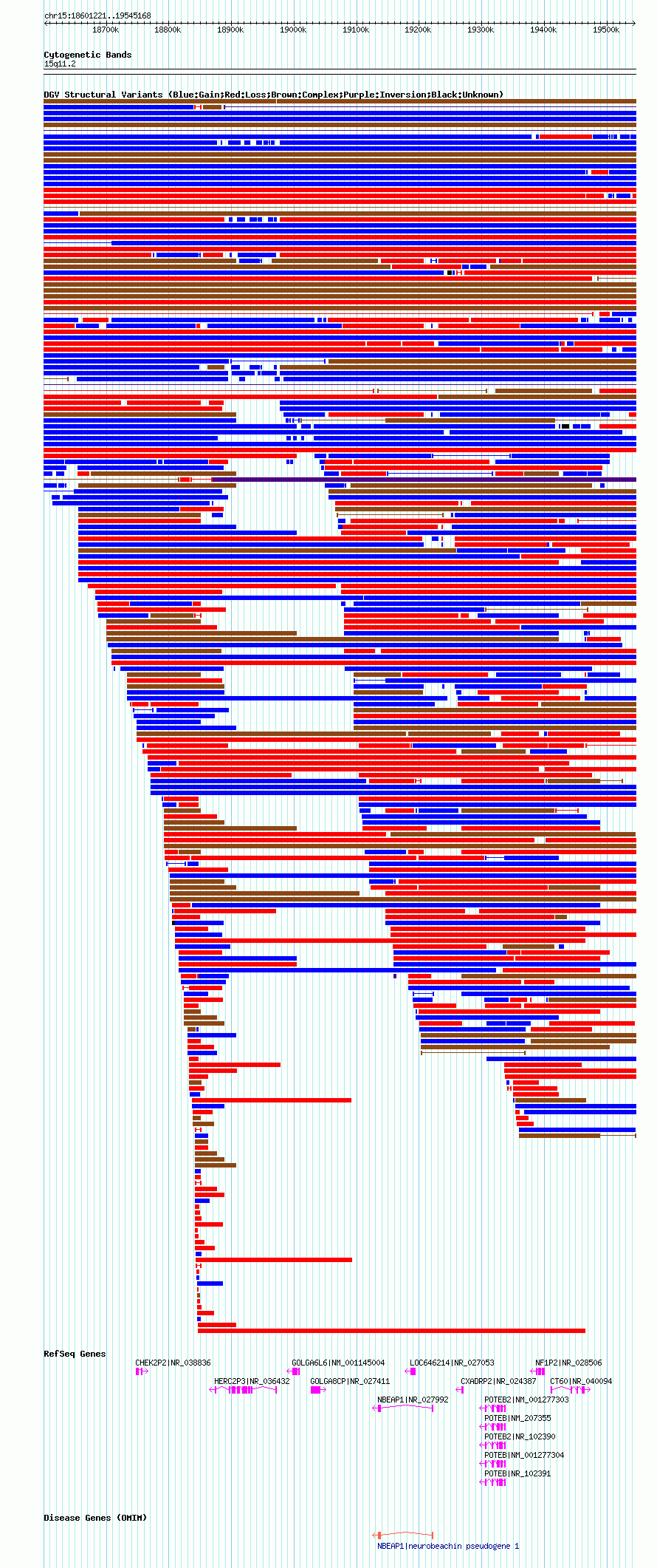 Variant DetailsVariant: essv25791438| Internal ID | 19182879 | | Landmark | | | Location Information | | | Cytoband | 15q11.1 | | Allele length | | Assembly | Allele length | | hg38 | 939227 | | hg19 | 939303 | | hg18 | 943948 |