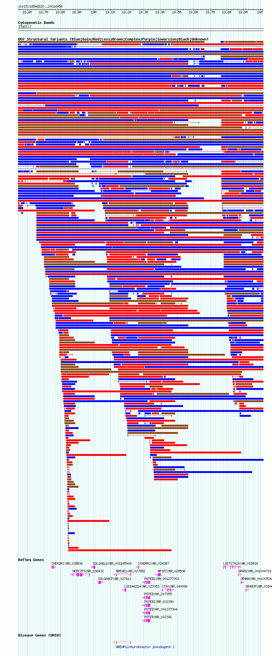 Variant DetailsVariant: essv25791584| Internal ID | 19177253 | | Landmark | | | Location Information | | | Cytoband | 15q11.1 | | Allele length | | Assembly | Allele length | | hg38 | 2146077 | | hg19 | 2228775 | | hg18 | 1470125 |