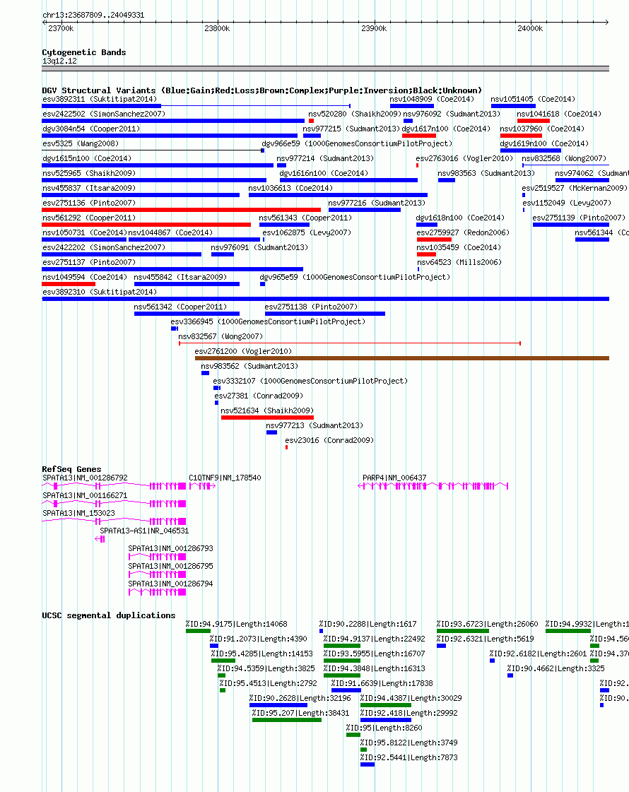 Variant DetailsVariant: essv25792098| Internal ID | 18825465 | | Landmark | | | Location Information | | | Cytoband | 13q12.12 | | Allele length | | Assembly | Allele length | | hg38 | 361523 | | hg19 | 361523 | | hg18 | 361523 |