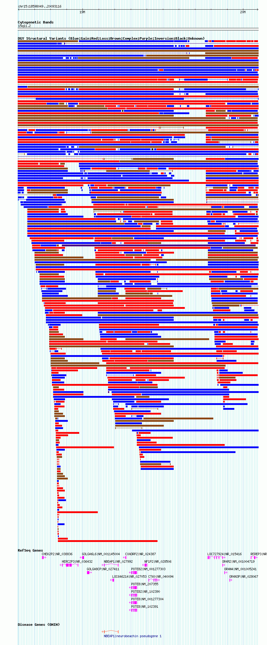 Variant DetailsVariant: essv25792385| Internal ID | 19179020 | | Landmark | | | Location Information | | | Cytoband | 15q11.1 | | Allele length | | Assembly | Allele length | | hg38 | 2171020 | | hg19 | 2253718 | | hg18 | 1495068 |