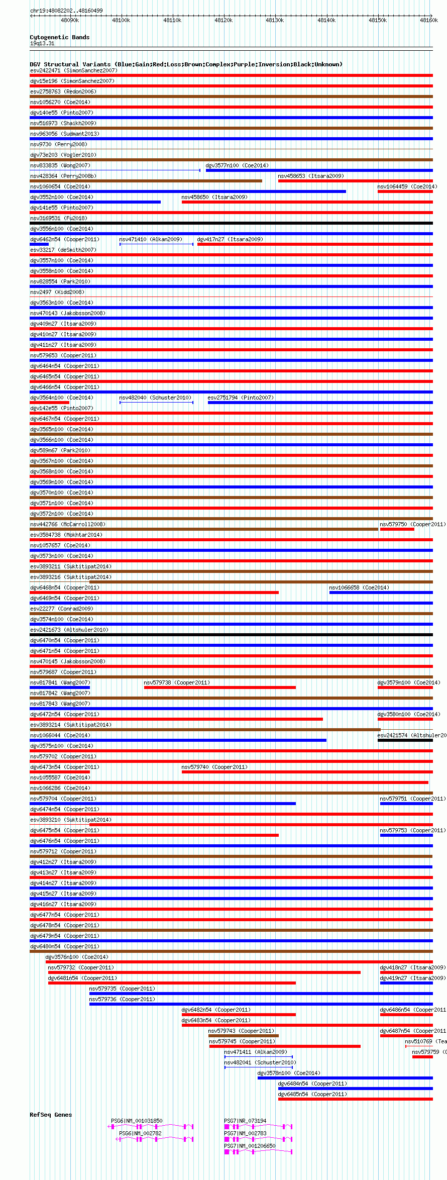 Variant DetailsVariant: essv25796581| Internal ID | 19170245 | | Landmark | | | Location Information | | | Cytoband | 19q13.2 | | Allele length | | Assembly | Allele length | | hg38 | 78298 | | hg19 | 78298 | | hg18 | 78298 |