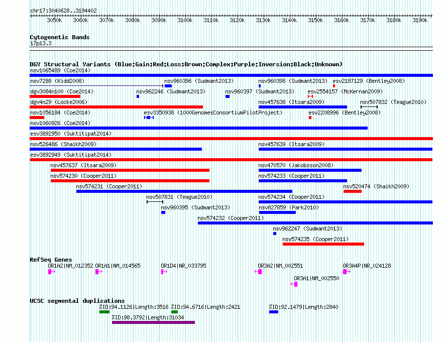 Variant DetailsVariant: essv25796676| Internal ID | 18832711 | | Landmark | | | Location Information | | | Cytoband | 17p13.3 | | Allele length | | Assembly | Allele length | | hg38 | 153775 | | hg19 | 153775 | | hg18 | 153775 |