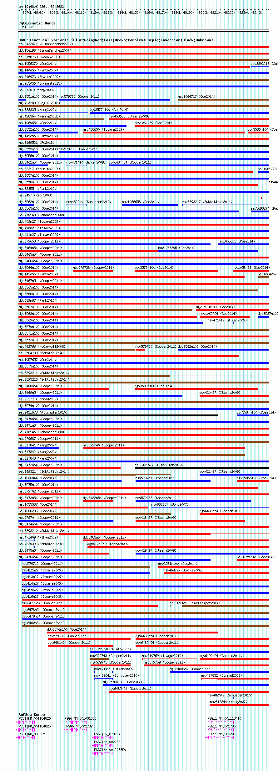 Variant DetailsVariant: essv25797396| Internal ID | 19177526 | | Landmark | | | Location Information | | | Cytoband | 19q13.2 | | Allele length | | Assembly | Allele length | | hg38 | 184457 | | hg19 | 184457 | | hg18 | 184457 |