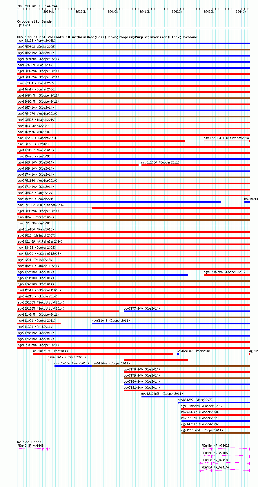 Variant DetailsVariant: essv25798585| Internal ID | 19166101 | | Landmark | | | Location Information | | | Cytoband | 8p11.22 | | Allele length | | Assembly | Allele length | | hg38 | 72358 | | hg19 | 72358 | | hg18 | 72358 |