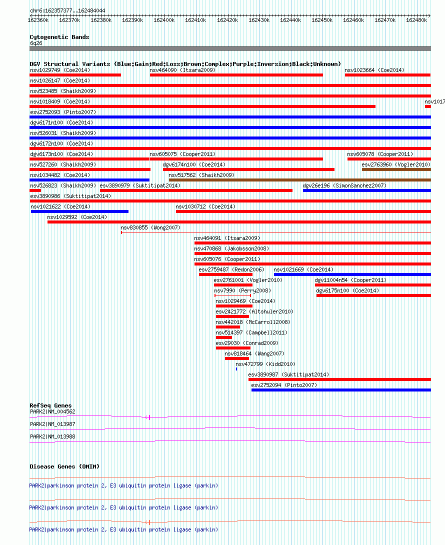 | | Variant Type | CNV loss | | Copy Number | 1 | | Allele State | | | Allele Origin | | | Probe Count | | | Validation Flag | | | Merged Status | S | | Merged Variants | esv3890986 | | Supporting Variants | | | Samples | | | Known Genes | PARK2 | | Method | SNP array | | Analysis | | | Platform | Illumina HumanHap 610 | | Comments | Number of probes=47 | | Reference | Suktitipat_et_al_2014 | | Pubmed ID | 25118596 | | Accession Number(s) | essv25798908