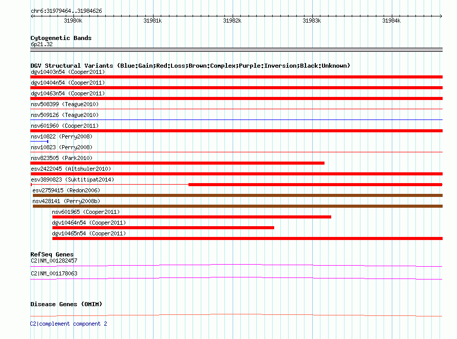 Variant DetailsVariant: essv25800289| Internal ID | 18820660 | | Landmark | | | Location Information | | | Cytoband | 6p21.32 | | Allele length | | Assembly | Allele length | | hg38 | 5163 | | hg19 | 5163 | | hg18 | 5163 |