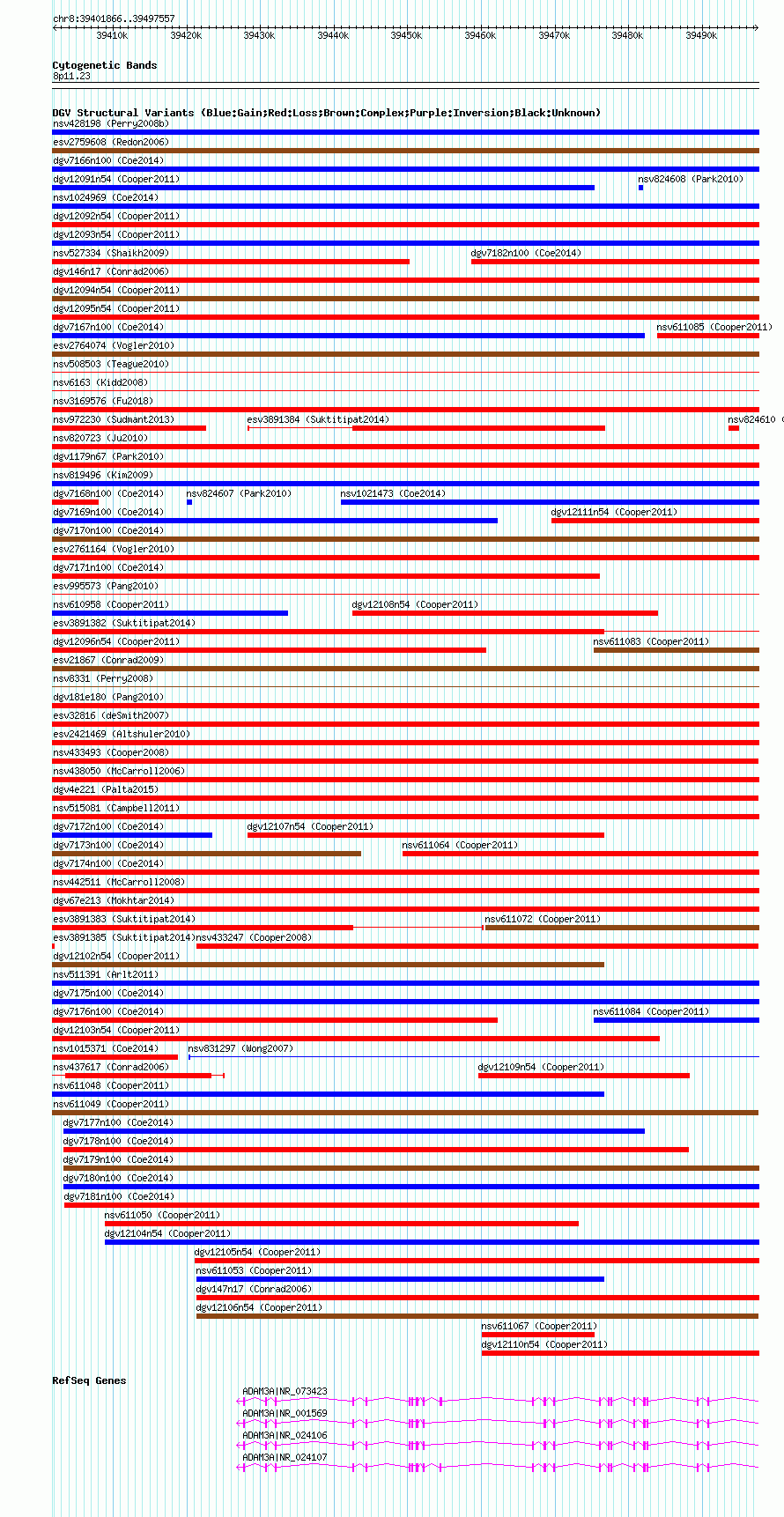 Variant DetailsVariant: essv25801173| Internal ID | 19164163 | | Landmark | | | Location Information | | | Cytoband | 8p11.22 | | Allele length | | Assembly | Allele length | | hg38 | 95692 | | hg19 | 95692 | | hg18 | 95692 |