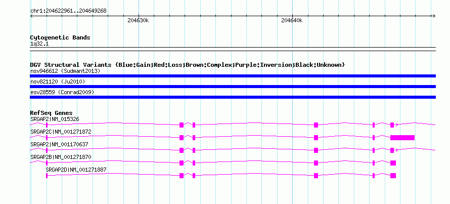 | Known Genes | SRGAP2, SRGAP2B, SRGAP2C, SRGAP2D |
