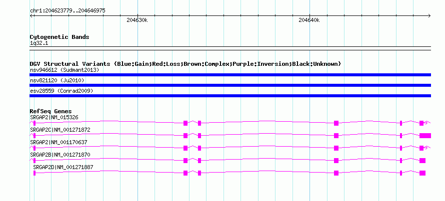 | Known Genes | SRGAP2, SRGAP2B, SRGAP2C, SRGAP2D |