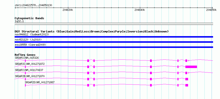 | Known Genes | SRGAP2, SRGAP2B, SRGAP2C, SRGAP2D |