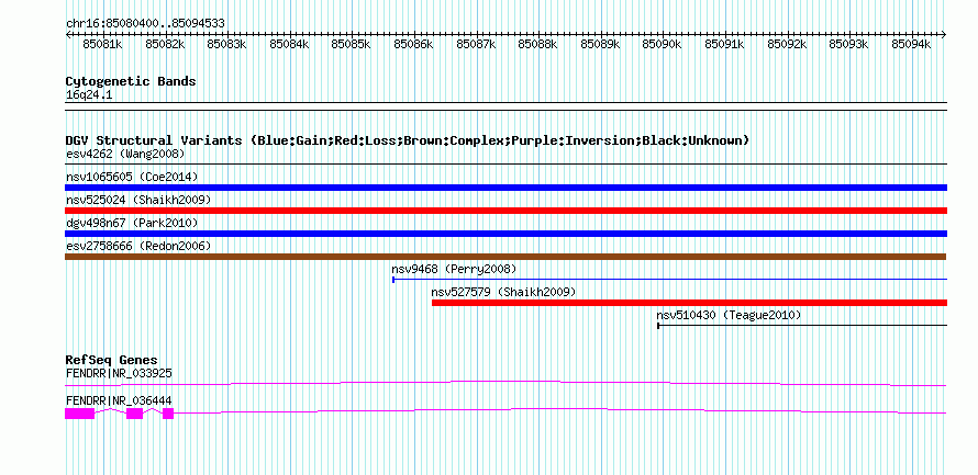 Outerchr16:85080400..85094533hg18UCSC Ensembl