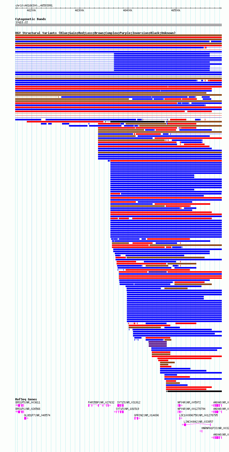 | | Variant Type | CNV loss | | Copy Number | | | Allele State | | | Allele Origin | | | Probe Count | | | Validation Flag | 1 | | Merged Status | S | | Merged Variants | esv12250 | | Supporting Variants | | | Samples | NA11931 | | Known Genes | ANXA8, BMS1P1, BMS1P5, FAM35BP, GLUD1P7, GPRIN2, HNRNPA1P33, LINC00842, LOC100996758, NPY4R, SYT15 | | Method | Oligo aCGH | | Analysis | Segment log2 ratios from each sample. This was done running the GADA algorithm (Pique-Regi et al., 2008) using the options "-M 10 -T 10 -a 2.5". Filter non-CNV segments using intensity thresholds. Merge remaining CNV "calls" within each sample. Adjacent calls of the same direction (gain or loss) are merged if both: the distance between calls is less than 10kb, and the distance between calls is less than 10% of the size of the largest of the two calls. | | Platform | Sanger H. Sapiens 42mCGH Array 5781_53 726K v1 | | Comments | | | Reference | Conrad_et_al_2009 | | Pubmed ID | 19812545 | | Accession Number(s) | essv50691