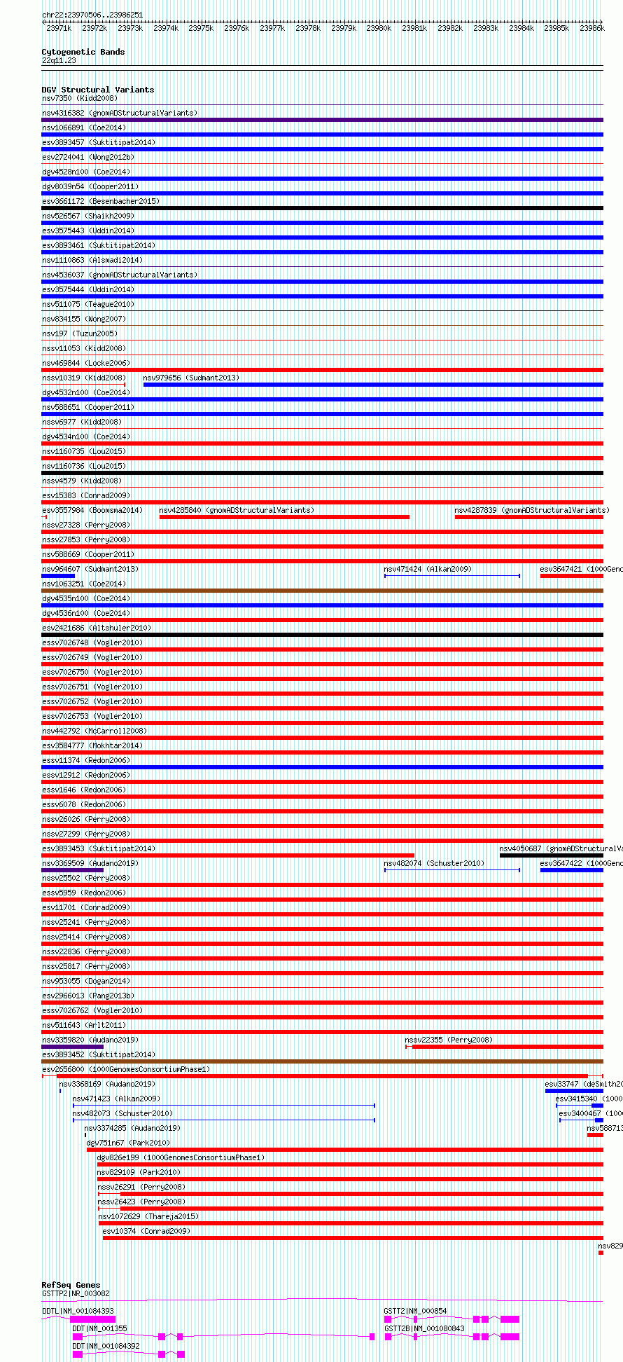 | | Variant Type | CNV deletion | | Copy Number | | | Allele State | | | Allele Origin | | | Probe Count | | | Validation Flag | 1 | | Merged Status | S | | Merged Variants | esv2656800 | | Supporting Variants | | | Samples | NA18976 | | Known Genes | DDT, DDTL, GSTT2 | | Method | Merging | | Analysis | No reference, merging analysis | | Platform | Merging | | Comments | | | Reference | 1000_Genomes_Consortium_Phase_1 | | Pubmed ID | 23128226 | | Accession Number(s) | essv5671375