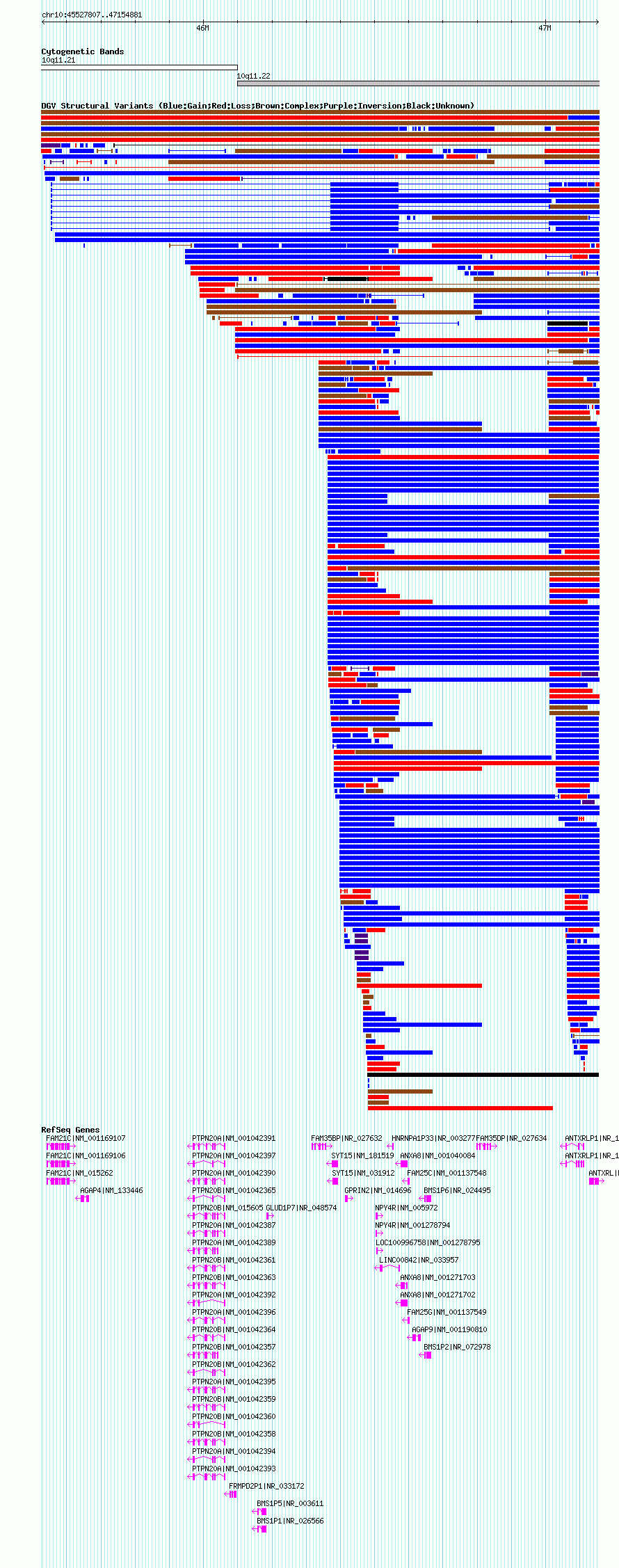 Variant DetailsVariant: essv5772 | Internal ID | 9963338 | | Landmark | | | Location Information | | | Cytoband | 10q11.21 | | Allele length | | Assembly | Allele length | | hg38 | 67482 | | hg19 | 1477075 | | hg18 | 1627075 | | hg17 | 1627075 |