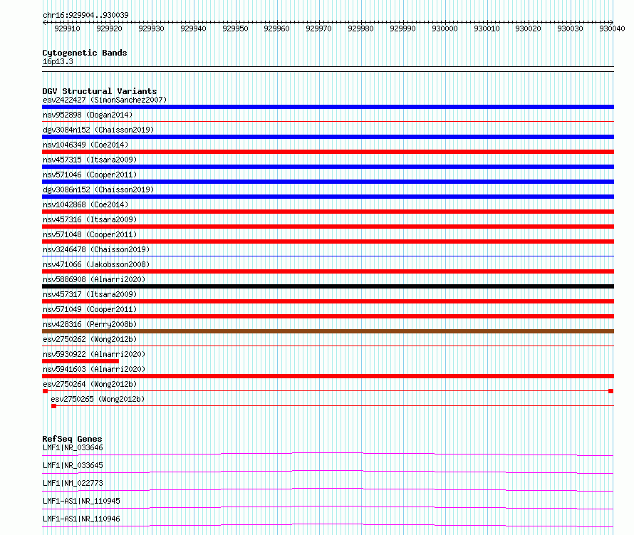 Variant DetailsVariant: essv6665428| Internal ID | 10077206 | | Landmark | | | Location Information | | | Cytoband | 16p13.3 | | Allele length | | Assembly | Allele length | | hg38 | 136 | | hg19 | 136 |