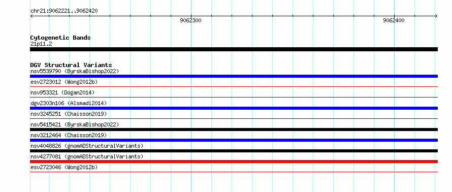 Variant DetailsVariant: essv6666746| Internal ID | 10080220 | | Landmark | | | Location Information | | | Cytoband | 21p11.2 | | Allele length | | Assembly | Allele length | | hg38 | 200 | | hg19 | 200 |