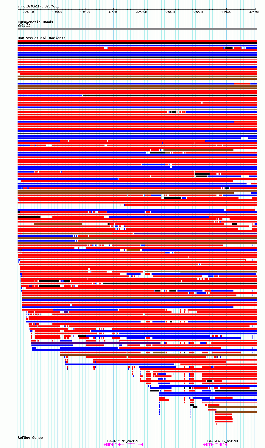 Variant DetailsVariant: essv6667534| Internal ID | 10084589 | | Landmark | | | Location Information | | | Cytoband | 6p21.32 | | Allele length | | Assembly | Allele length | | hg38 | 84435 | | hg19 | 84435 |