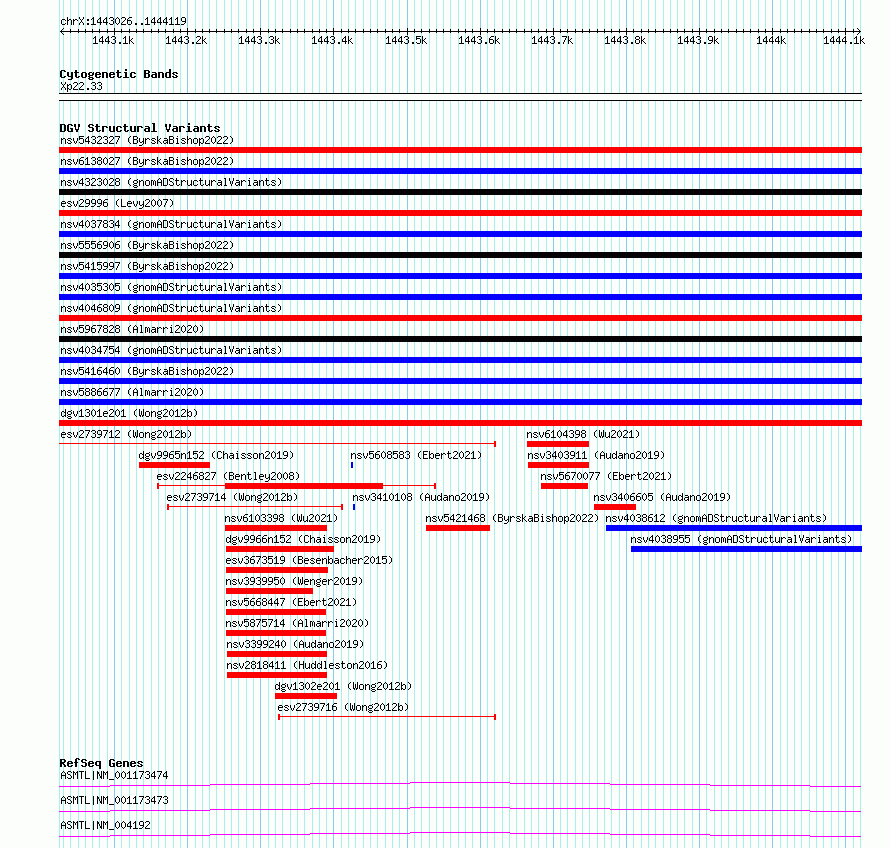 Variant DetailsVariant: essv6667802| Internal ID | 10084831 | | Landmark | | | Location Information | | | Cytoband | Xp22.33 | | Allele length | | Assembly | Allele length | | hg38 | 1094 | | hg19 | 1094 |