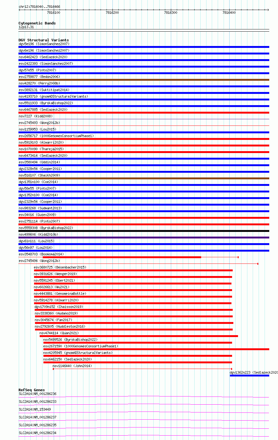 Variant DetailsVariant: essv6668193| Internal ID | 10085183 | | Landmark | | | Location Information | | | Cytoband | 12p13.31 | | Allele length | | Assembly | Allele length | | hg38 | 427 | | hg19 | 427 |