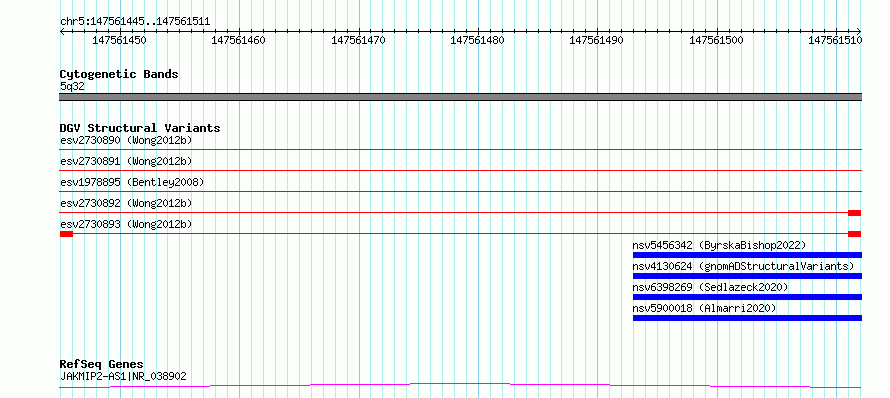 Variant DetailsVariant: essv6670903| Internal ID | 10086685 | | Landmark | | | Location Information | | | Cytoband | 5q32 | | Allele length | | Assembly | Allele length | | hg38 | 67 | | hg19 | 67 |