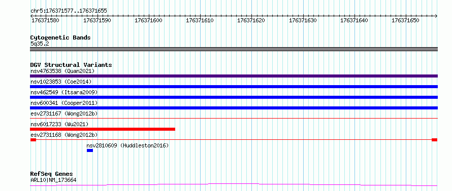 Variant DetailsVariant: essv6670942| Internal ID | 10086650 | | Landmark | | | Location Information | | | Cytoband | 5q35.2 | | Allele length | | Assembly | Allele length | | hg38 | 79 | | hg19 | 79 |