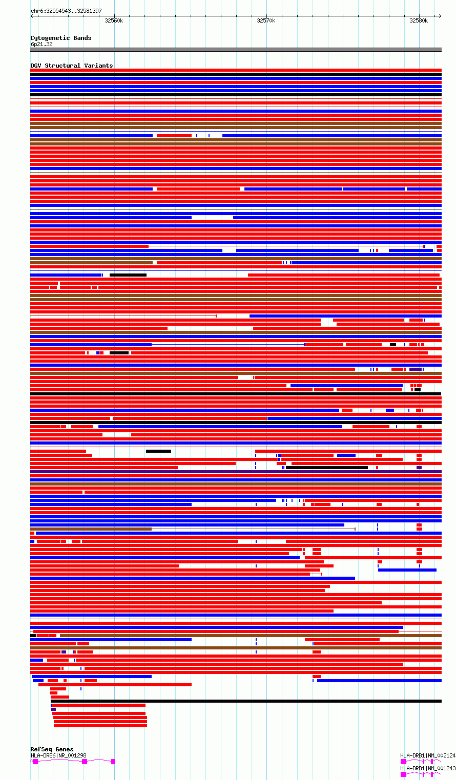 Variant DetailsVariant: essv6671086| Internal ID | 10086520 | | Landmark | | | Location Information | | | Cytoband | 6p21.32 | | Allele length | | Assembly | Allele length | | hg38 | 26855 | | hg19 | 26855 |