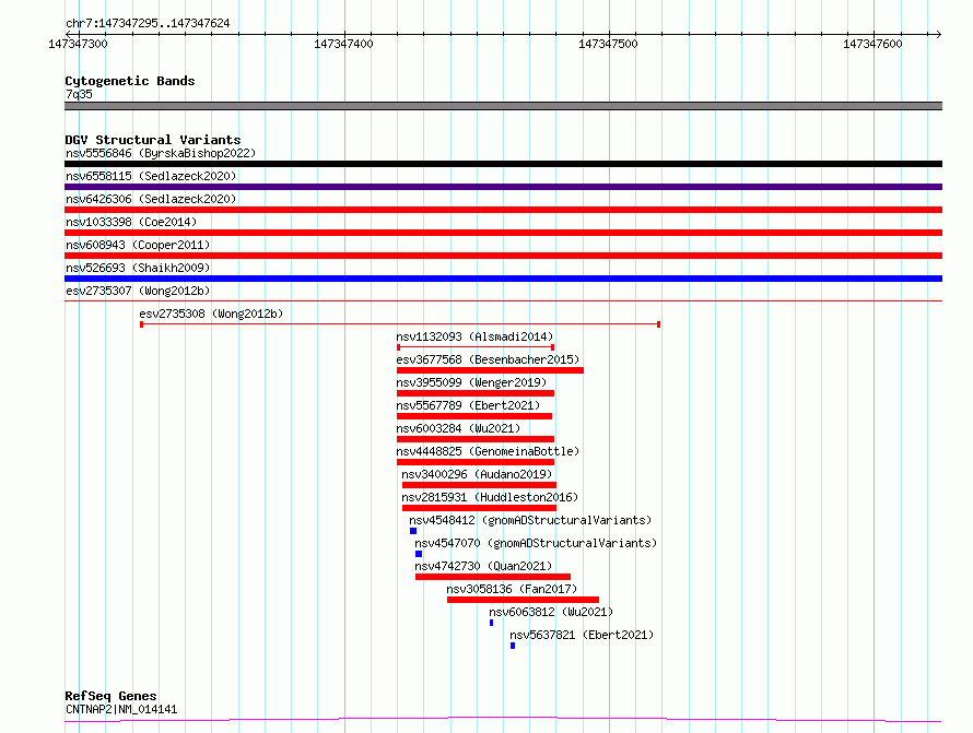 Variant DetailsVariant: essv6671691| Internal ID | 10085975 | | Landmark | | | Location Information | | | Cytoband | 7q35 | | Allele length | | Assembly | Allele length | | hg38 | 330 | | hg19 | 330 |