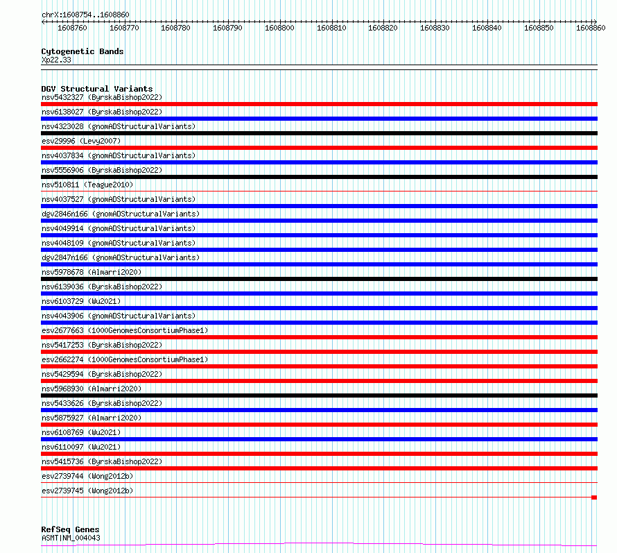 Variant DetailsVariant: essv6671824| Internal ID | 10085856 | | Landmark | | | Location Information | | | Cytoband | Xp22.33 | | Allele length | | Assembly | Allele length | | hg38 | 107 | | hg19 | 107 |