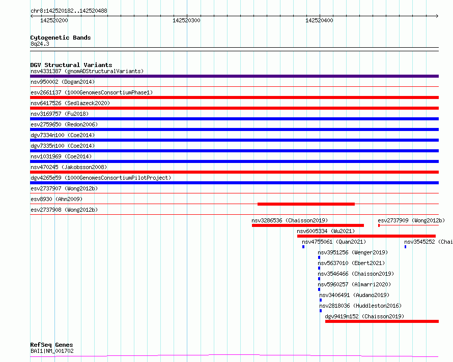 Variant DetailsVariant: essv6672252| Internal ID | 10085470 | | Landmark | | | Location Information | | | Cytoband | 8q24.3 | | Allele length | | Assembly | Allele length | | hg38 | 307 | | hg19 | 307 |