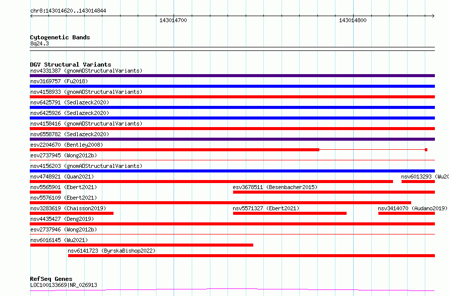 Variant DetailsVariant: essv6672260| Internal ID | 10085463 | | Landmark | | | Location Information | | | Cytoband | 8q24.3 | | Allele length | | Assembly | Allele length | | hg38 | 225 | | hg19 | 225 |