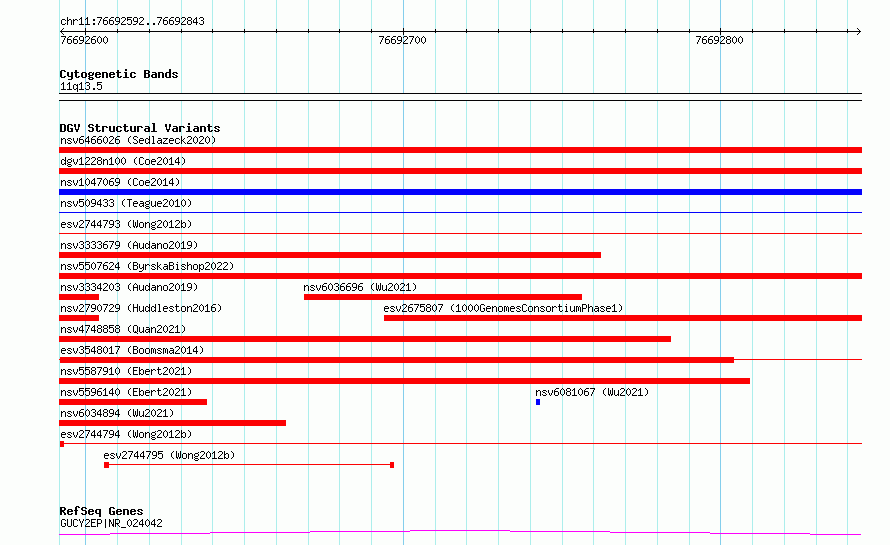 Variant DetailsVariant: essv6672993| Internal ID | 10090465 | | Landmark | | | Location Information | | | Cytoband | 11q13.5 | | Allele length | | Assembly | Allele length | | hg38 | 252 | | hg19 | 252 |