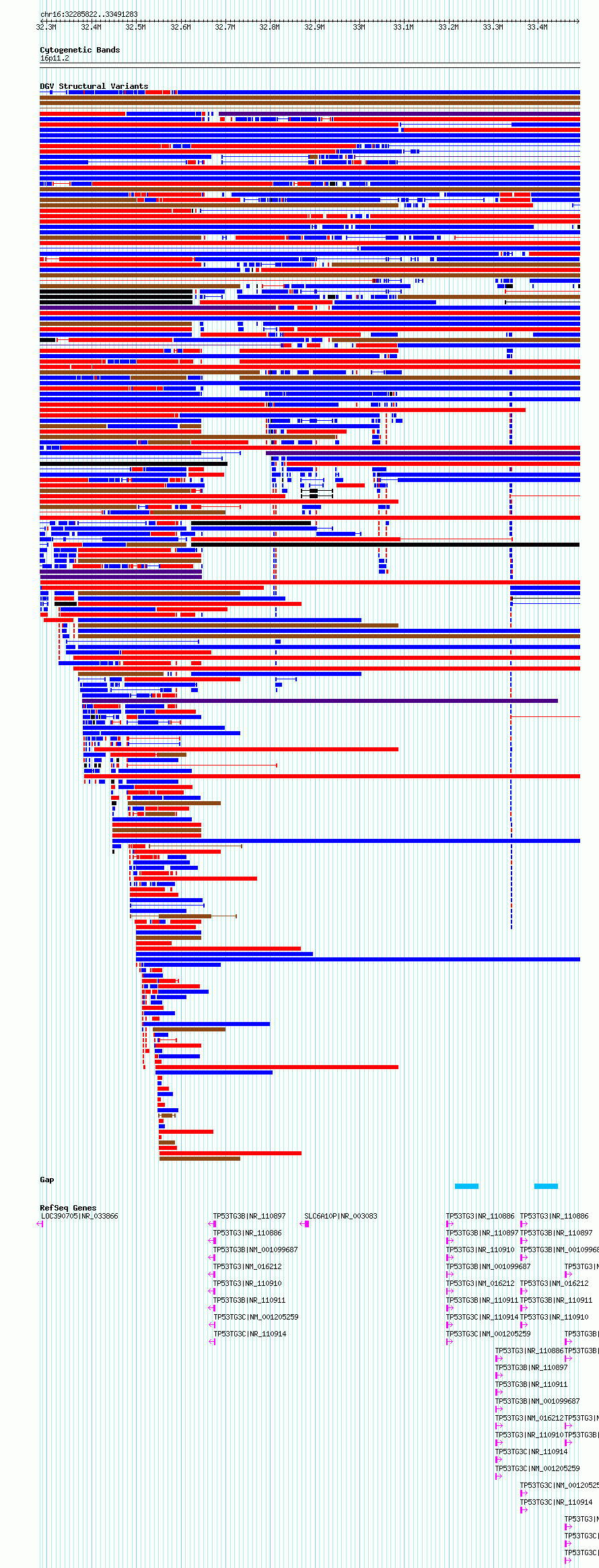 Variant DetailsVariant: essv6673990| Internal ID | 10089569 | | Landmark | | | Location Information | | | Cytoband | 16p11.2 | | Allele length | | Assembly | Allele length | | hg38 | 1205462 | | hg19 | 996608 |