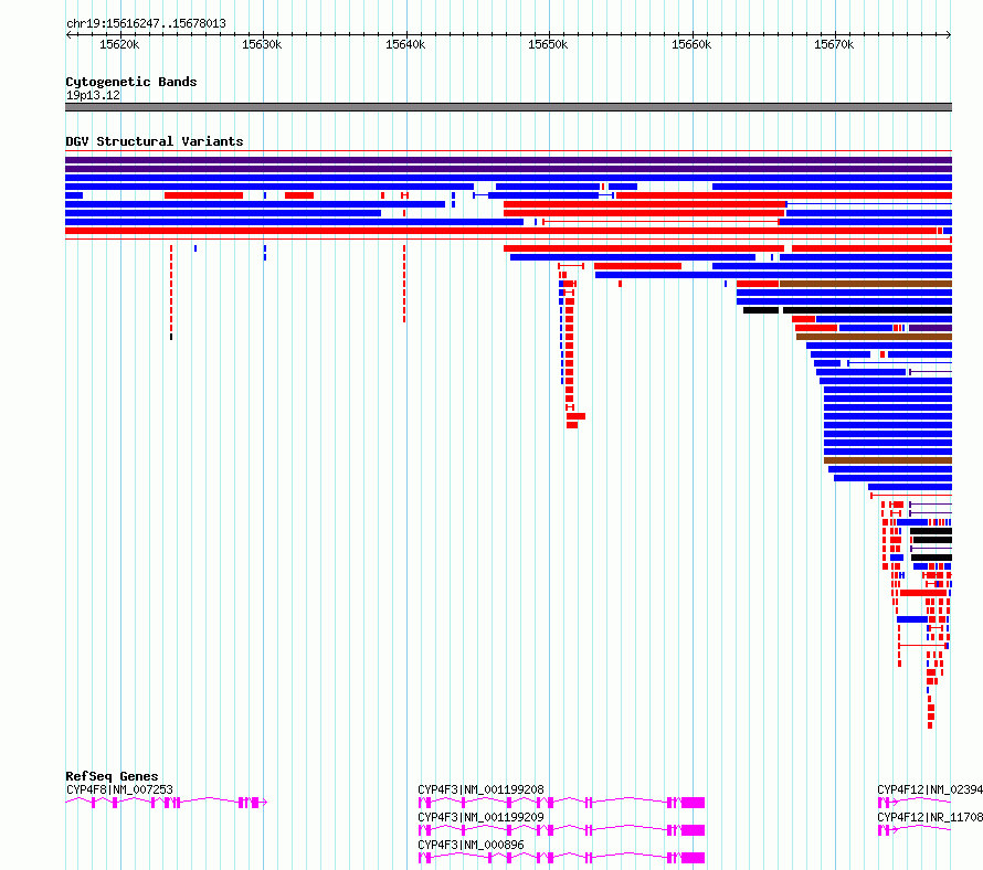 | | Variant Type | CNV deletion | | Copy Number | | | Allele State | | | Allele Origin | | | Probe Count | | | Validation Flag | | | Merged Status | S | | Merged Variants | esv2718235 | | Supporting Variants | | | Samples | SSM031 | | Known Genes | CYP4F12, CYP4F3, CYP4F8 | | Method | Sequencing | | Analysis | Breakdancer:4 times standard deviation,VariationHunter:4 times standard deviation and at least 3 supportting reads | | Platform | Illumina HiSeq 2000 | | Comments | | | Reference | Wong_et_al_2012b | | Pubmed ID | 23290073 | | Accession Number(s) | essv6674767