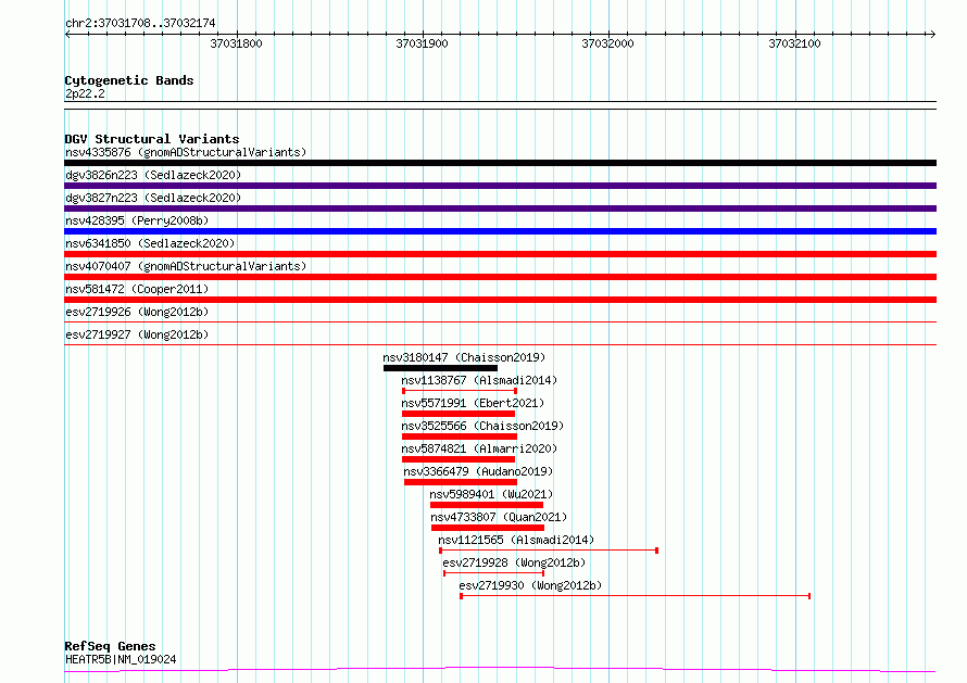 Variant DetailsVariant: essv6679473| Internal ID | 10095824 | | Landmark | | | Location Information | | | Cytoband | 2p22.2 | | Allele length | | Assembly | Allele length | | hg38 | 467 | | hg19 | 467 |