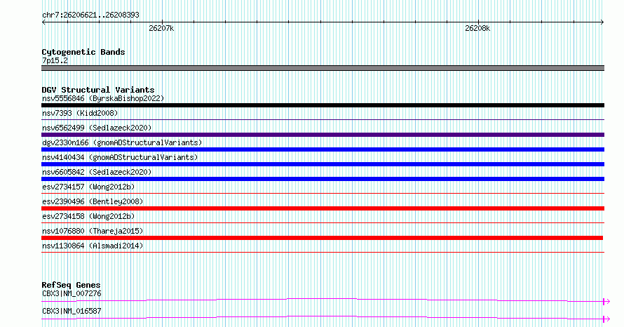 | | Variant Type | CNV deletion | | Copy Number | | | Allele State | | | Allele Origin | | | Probe Count | | | Validation Flag | | | Merged Status | S | | Merged Variants | esv2734157, esv2734158 | | Supporting Variants | | | Samples | SSM005 | | Known Genes | CBX3 | | Method | Sequencing | | Analysis | Breakdancer:4 times standard deviation,VariationHunter:4 times standard deviation and at least 3 supportting reads | | Platform | Illumina HiSeq 2000 | | Comments | | | Reference | Wong_et_al_2012b | | Pubmed ID | 23290073 | | Accession Number(s) | essv6680454
