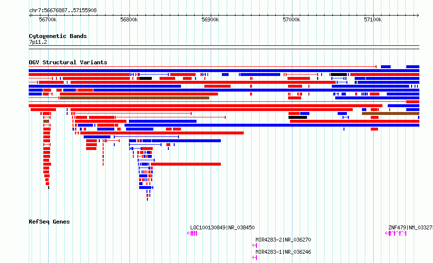 Variant DetailsVariant: essv6680637| Internal ID | 9750185 | | Landmark | | | Location Information | | | Cytoband | 7p11.2 | | Allele length | | Assembly | Allele length | | hg38 | 479022 | | hg19 | 479036 |