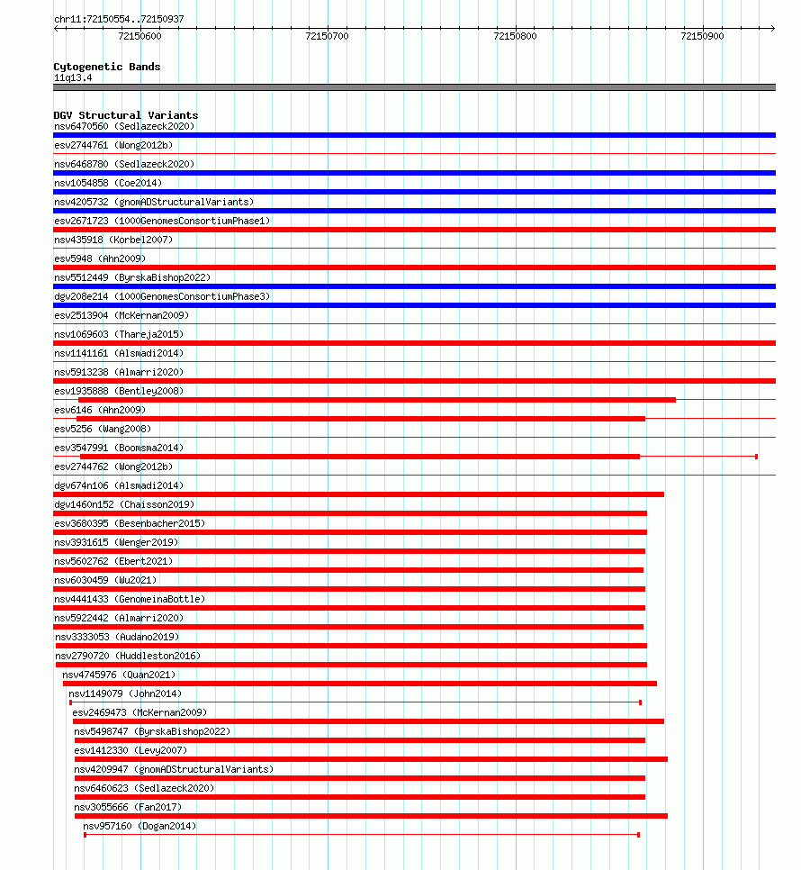 Variant DetailsVariant: essv6681484| Internal ID | 10097634 | | Landmark | | | Location Information | | | Cytoband | 11q13.4 | | Allele length | | Assembly | Allele length | | hg38 | 384 | | hg19 | 384 |