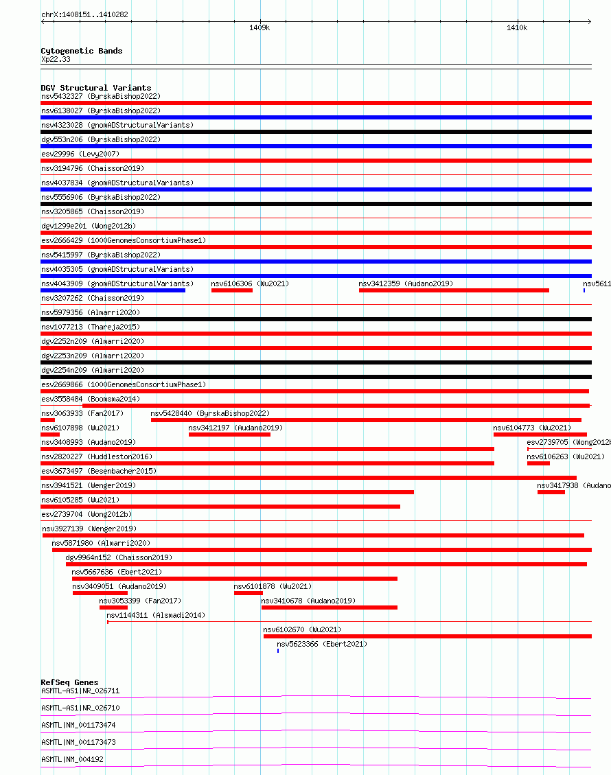 Variant DetailsVariant: essv6682066| Internal ID | 9993191 | | Landmark | | | Location Information | | | Cytoband | Xp22.33 | | Allele length | | Assembly | Allele length | | hg38 | 2132 | | hg19 | 2132 |
