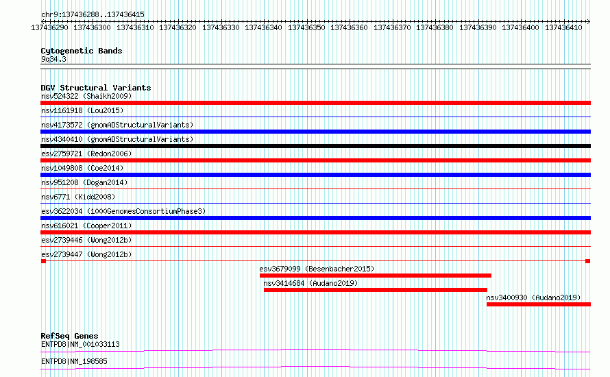 Variant DetailsVariant: essv6684758| Internal ID | 9752454 | | Landmark | | | Location Information | | | Cytoband | 9q34.3 | | Allele length | | Assembly | Allele length | | hg38 | 128 | | hg19 | 128 |