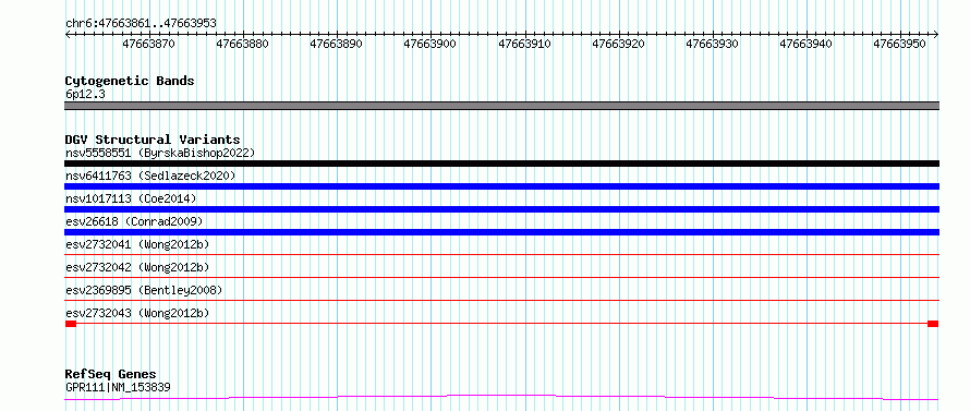 Variant DetailsVariant: essv6687257| Internal ID | 10101217 | | Landmark | | | Location Information | | | Cytoband | 6p12.3 | | Allele length | | Assembly | Allele length | | hg38 | 93 | | hg19 | 93 |