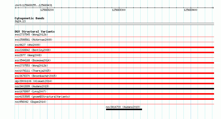 Variant DetailsVariant: essv6687845| Internal ID | 9755058 | | Landmark | | | Location Information | | | Cytoband | 8q24.13 | | Allele length | | Assembly | Allele length | | hg38 | 277 | | hg19 | 277 |